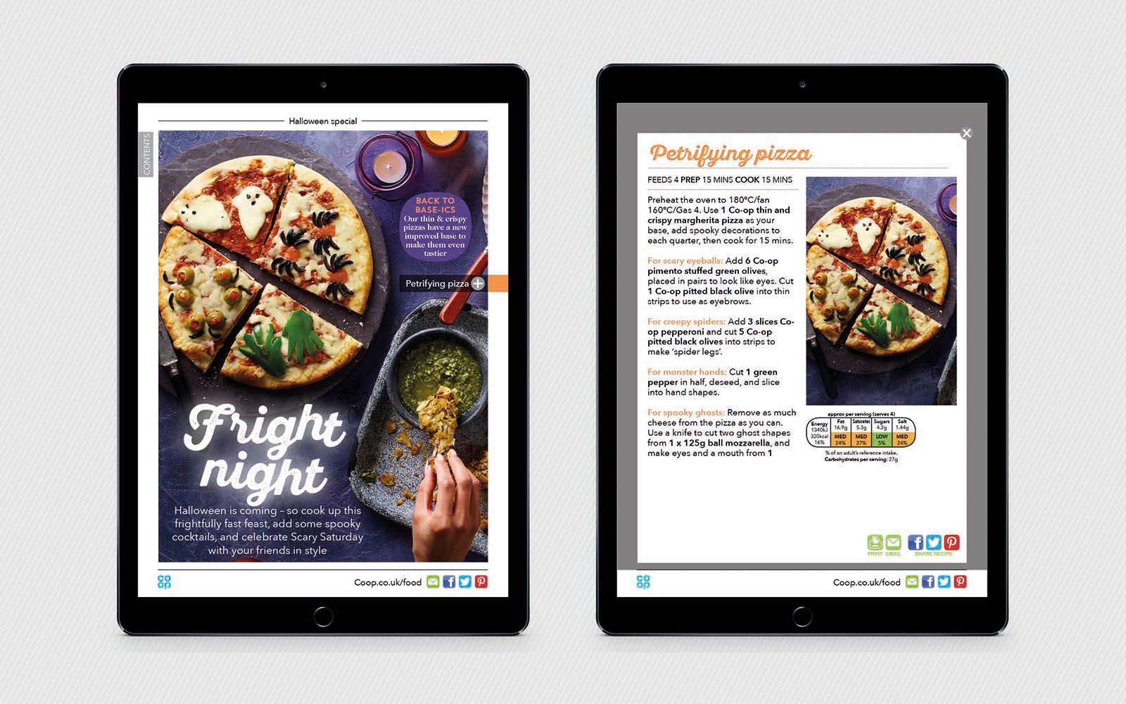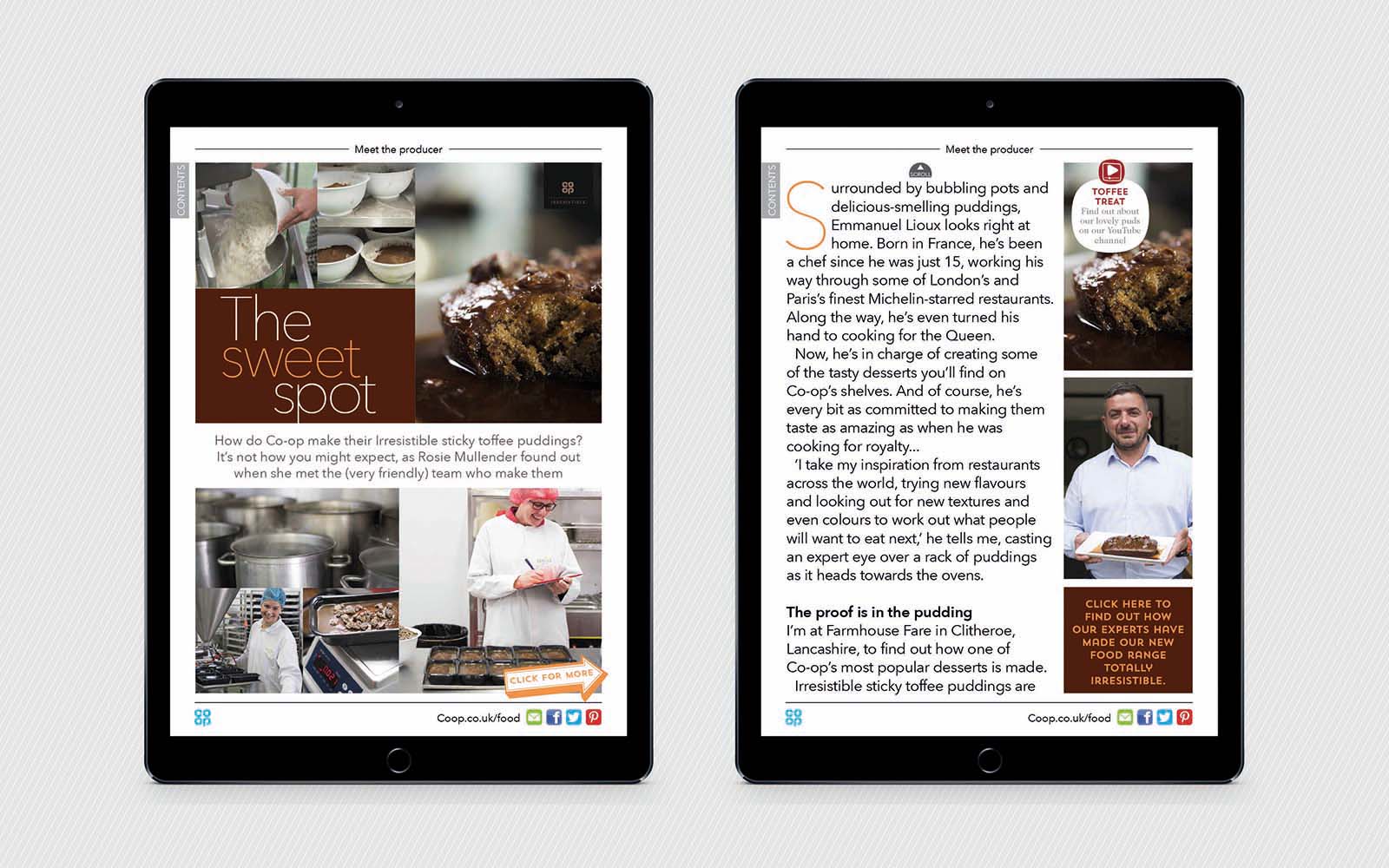 I worked with the Co-op Food team for a number of years transforming each issue into an interactive digital magazine for iPad. Working closely with the Art Director to present the content in as clear and concise a way as possible while being visually attractive.